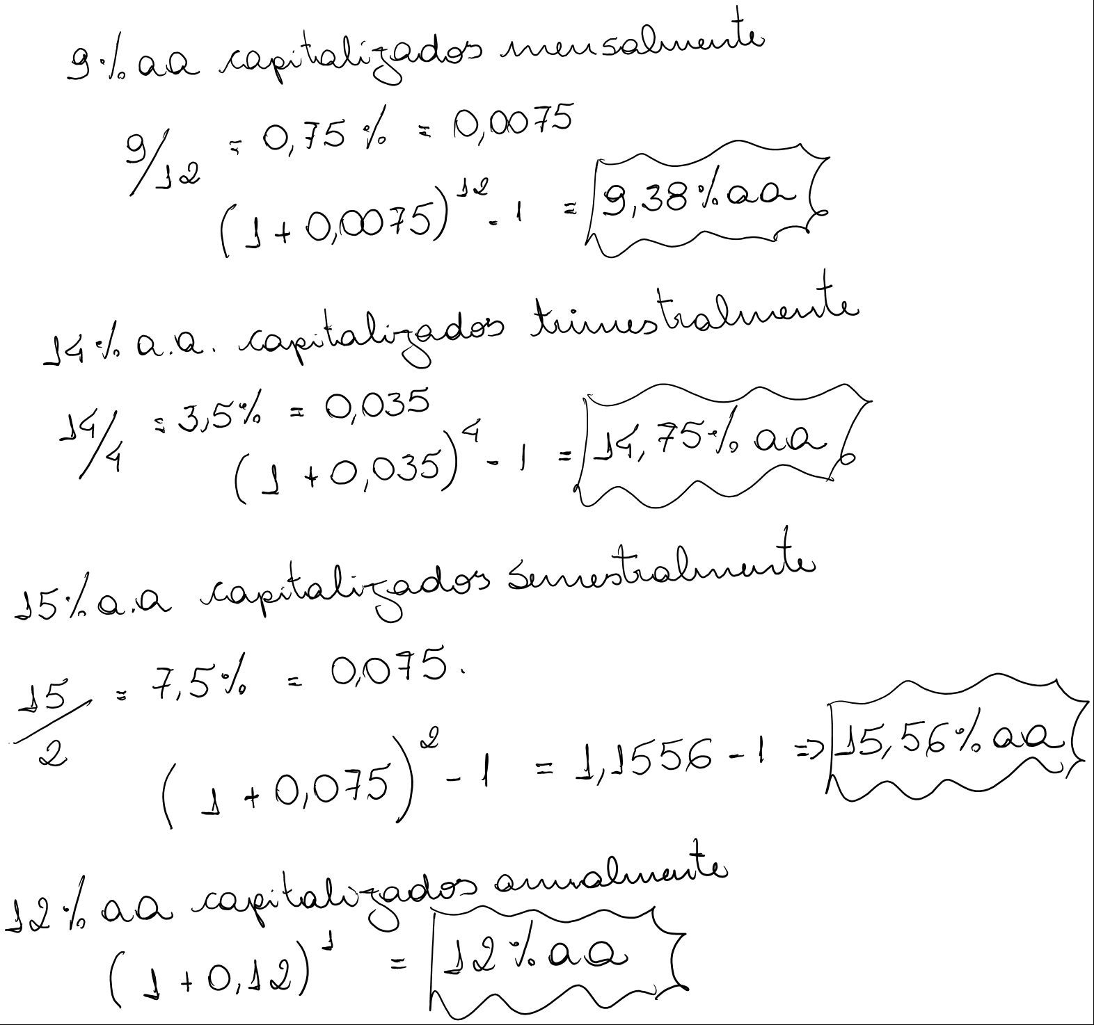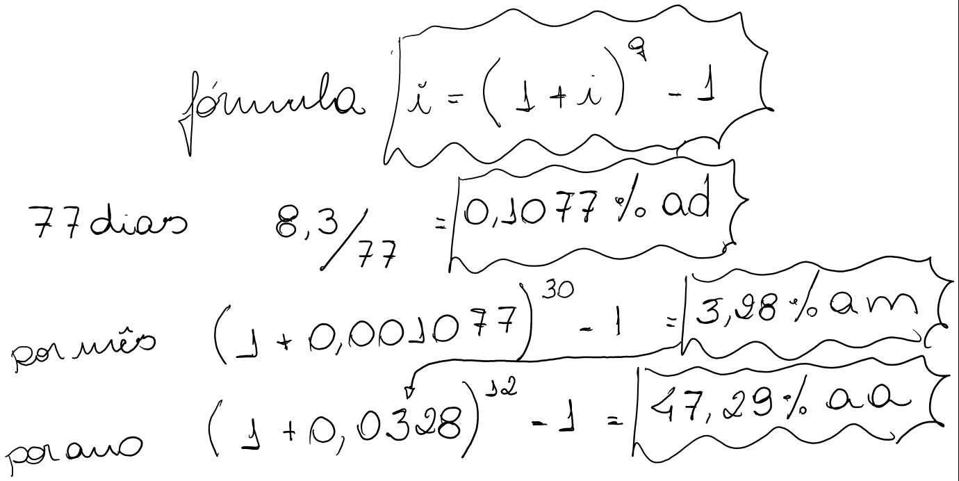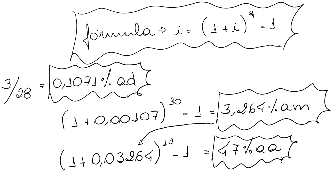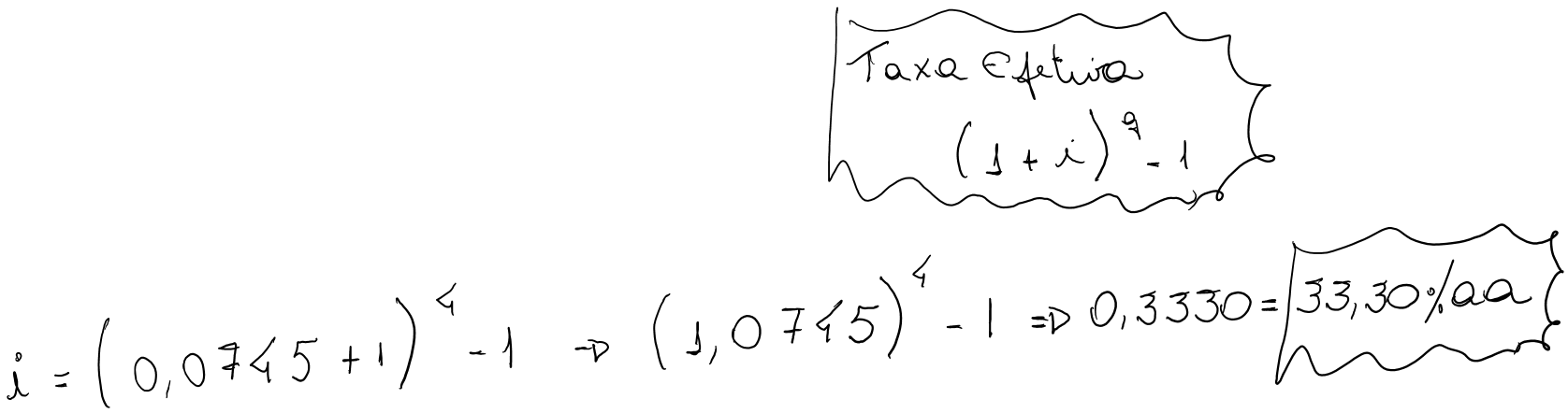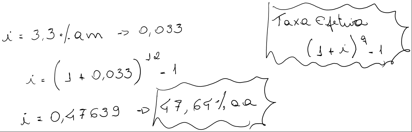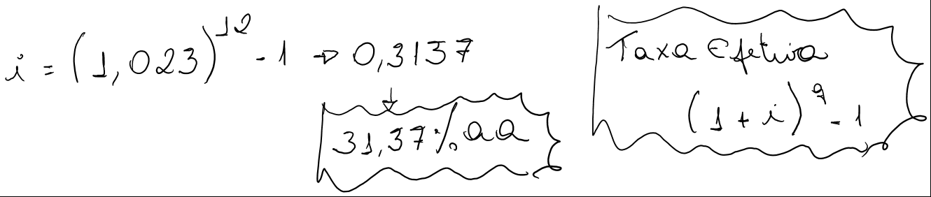 Um financiamento está sendo negociado a uma taxa nominal (linear) de 72% ao ano. Determinar o custo efetivo anual desta operação, admitindo-se que os juros sejam capitalizados: