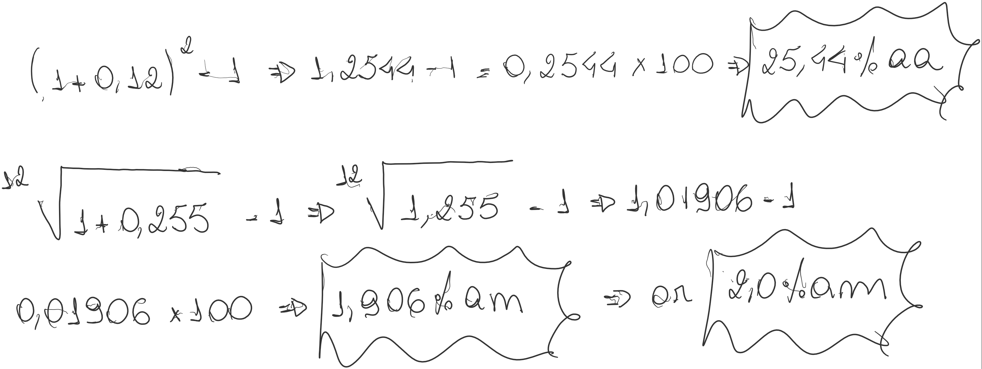 Admita que uma pessoa deseja ganhar 25% ao ano de taxa real em suas aplicações financeiras. Projetando-se a inflação no valor médio mensal de 1,8% nos próximos 3 meses, e de 1,0% ao longo dos 3 meses seguintes, determinar a taxa nominal mensal que a pessoa deve aplicar seus recursos no semestre.