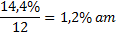 Por exempo, 12% ao ano equivale no regime de juros simples a taxa diária seria de :