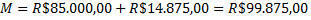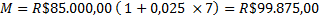 4) Calcular o montante de R$ 85.000,00 aplicado por: